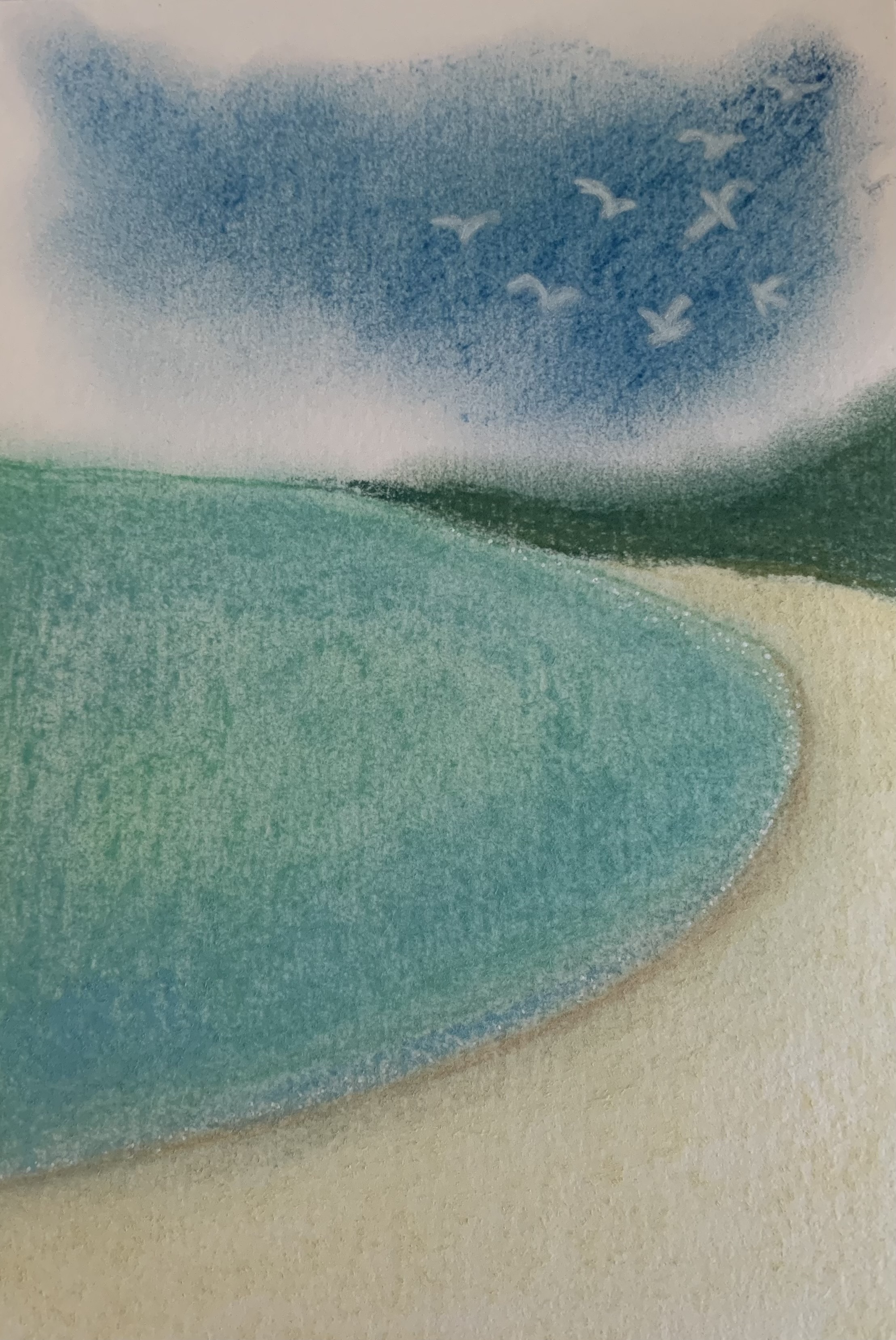 海で風や波の音を感じ、日々の生活音から解放されて癒される気持ちをパステルで描いてみました。