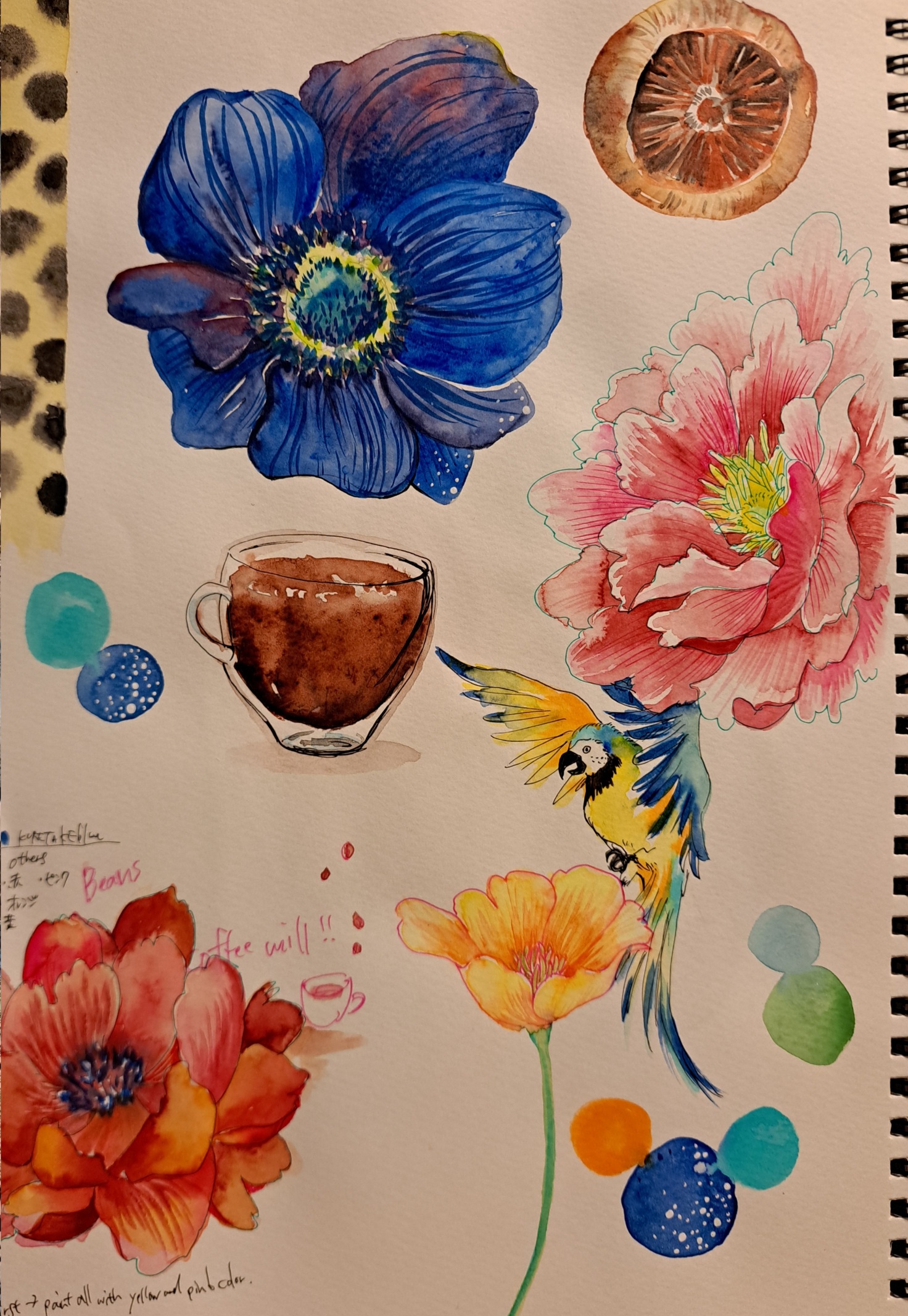 日々のスケッチブックより気に入ったページを抜粋。徒然なるままに筆を動かすと楽しいのであーる。