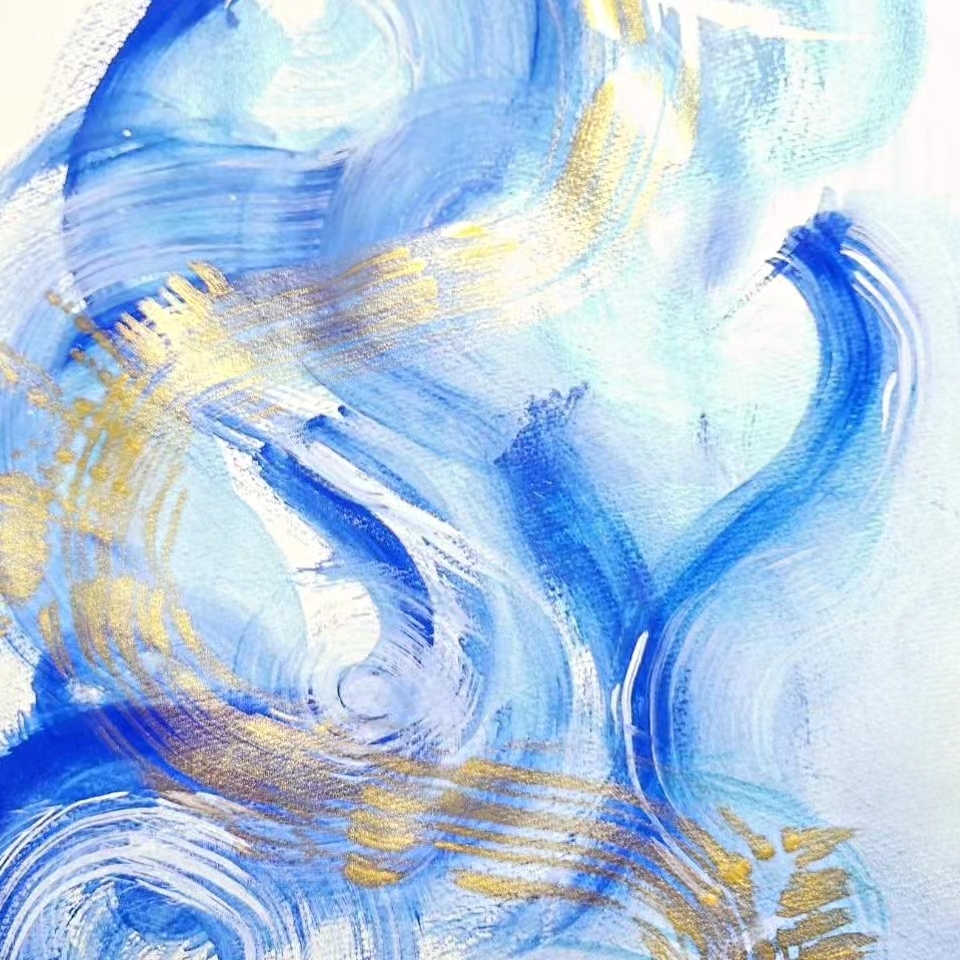 新しい年。龍の年、龍が通り過ぎる瞬間に瑞々しい空気感と清らかな水が跳ね上がり、キラキラ光る音色と混ざり合う清々しい色彩や明るさをイメージしました!心が明るく、明日の穏やかな日へ向かい、陽が昇り平和で暖かなイメージです!