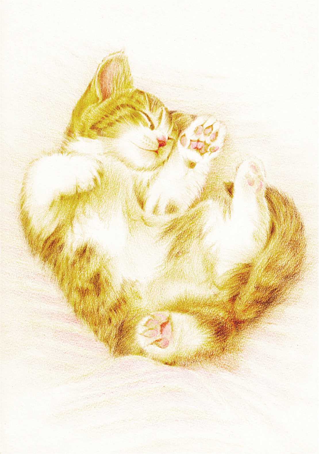 膝の上で寝てしまった子猫を、色鉛筆で描きました。
