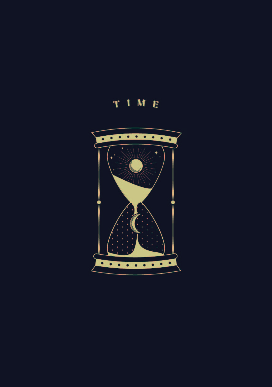 タロットカードっぽいデザインして、星空の雰囲気を作るように太陽と月など要素を組み合わせて描いて、時間の流しを伝えたいです。