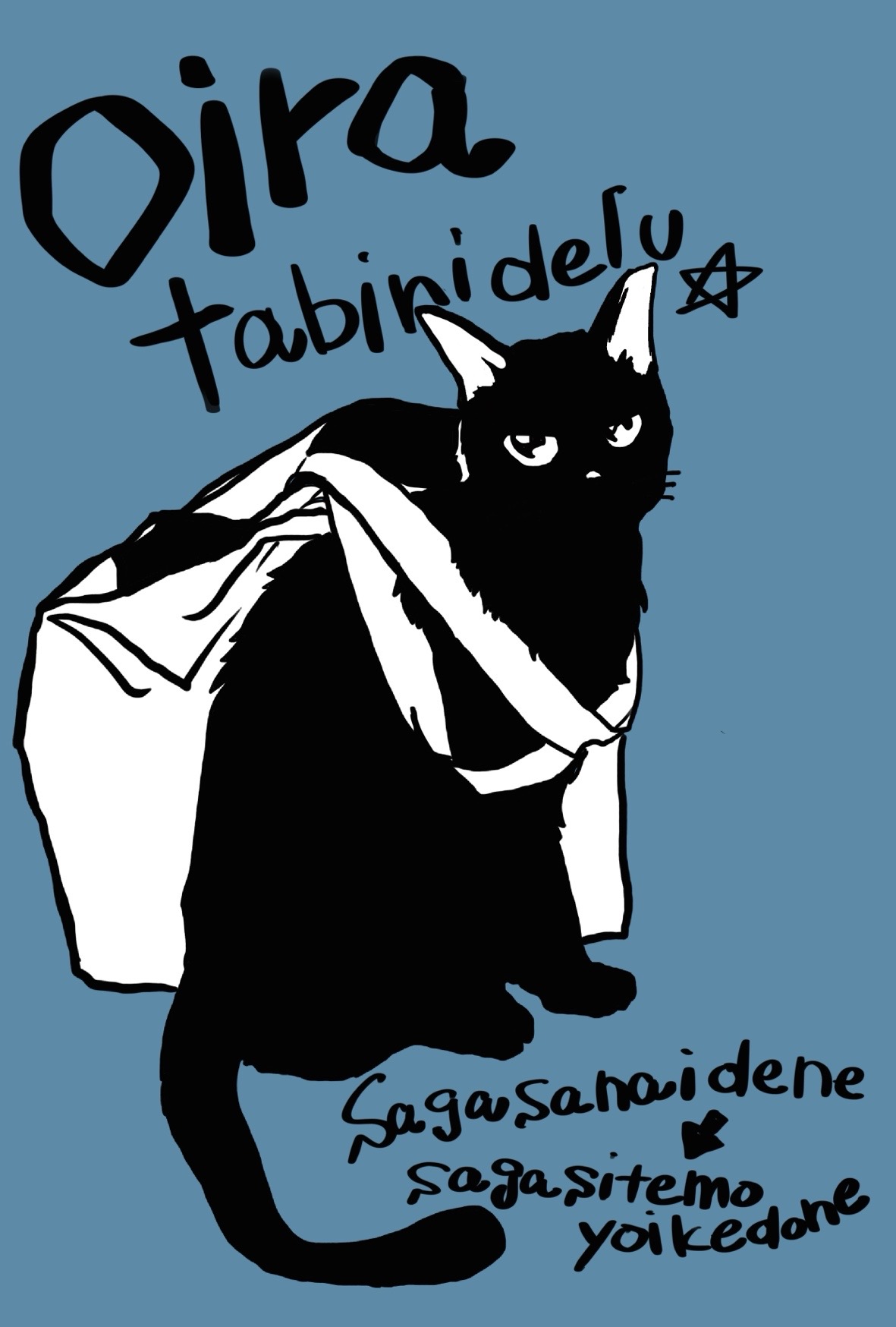 たまたまうちの猫さんが置いていたトートの紐に潜り込んだ姿が面白くて、切り絵のモチーフに描いた作品です。