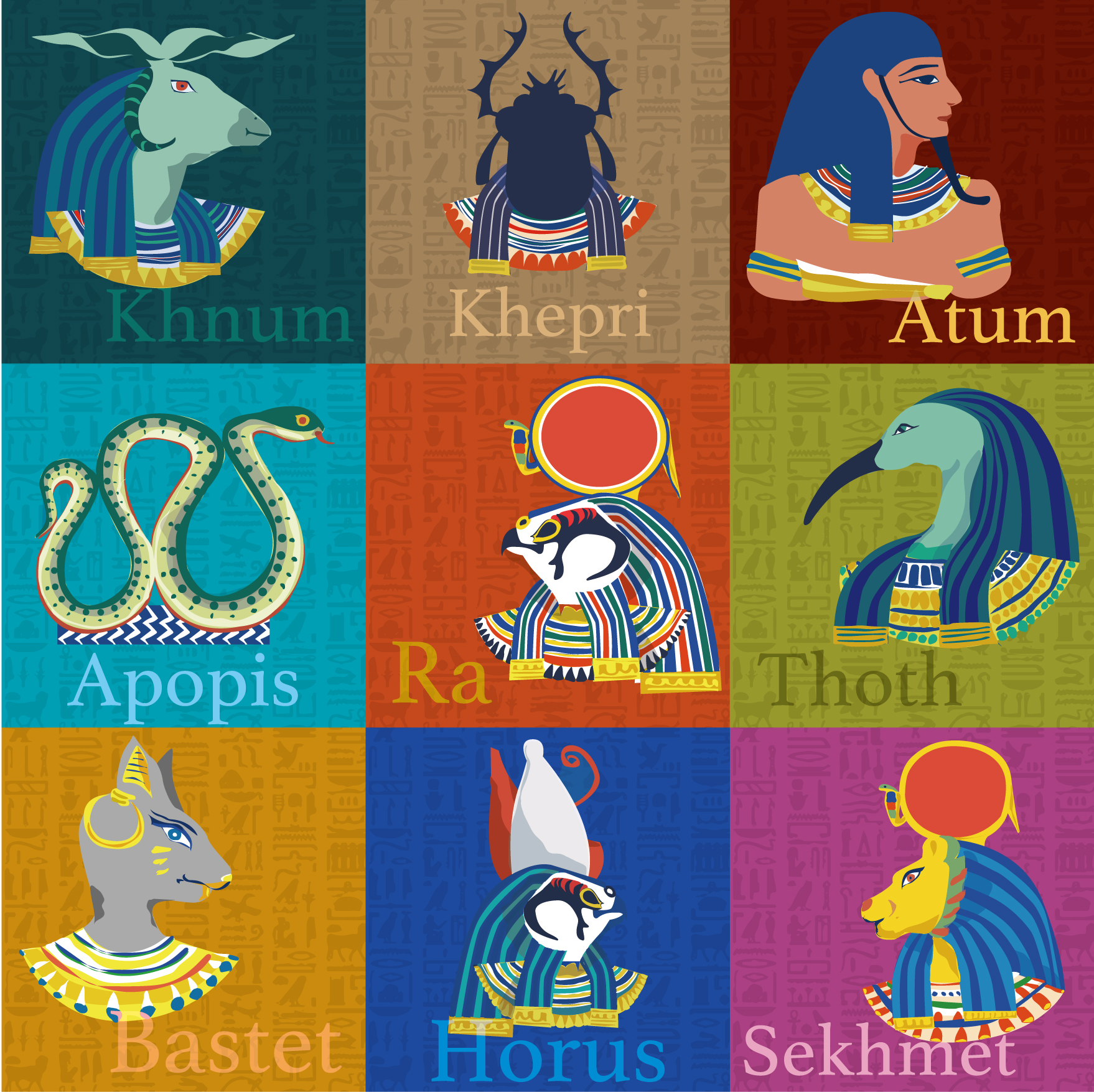 1日を通して変化し旅を続けるエジプト神話の神様「ラー」を中心に、ラーを巡る神様たちを描きましたラーの夜中の姿「クヌム」朝の姿「ケプリ」夕方の姿「アトゥム」そしてラー子供「バステト」「ホルス」「セクメト」意外と知らなかったエジプト神の繋がりを作品にしました