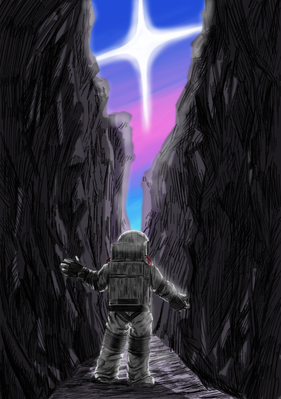 月や火星、様々な惑星の調査は進んでいますが、無限に広がる宇宙空間の中では、まだ発見されていない宇宙の惑星、現象は数多にあると考えています。この私の考えをコンセプトに、宇宙飛行士が謎多き惑星の未来を見つけるイラストを描きました。
