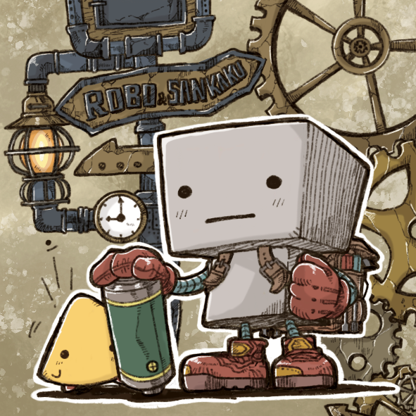 のんびりした表情をいつも浮かべている「ロボット」と、ちっちゃくていつも不思議そうに見つめてくる、なぞの生き物「さんかく」が旅をする。