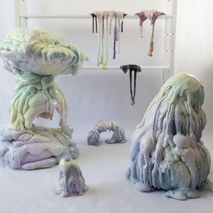 この作品群は、そのような『グロテスクで悲観的なもの』と、『ポップで楽観的なもの』が共存した風景を作り出そうという意図のもと、制作されたものです。