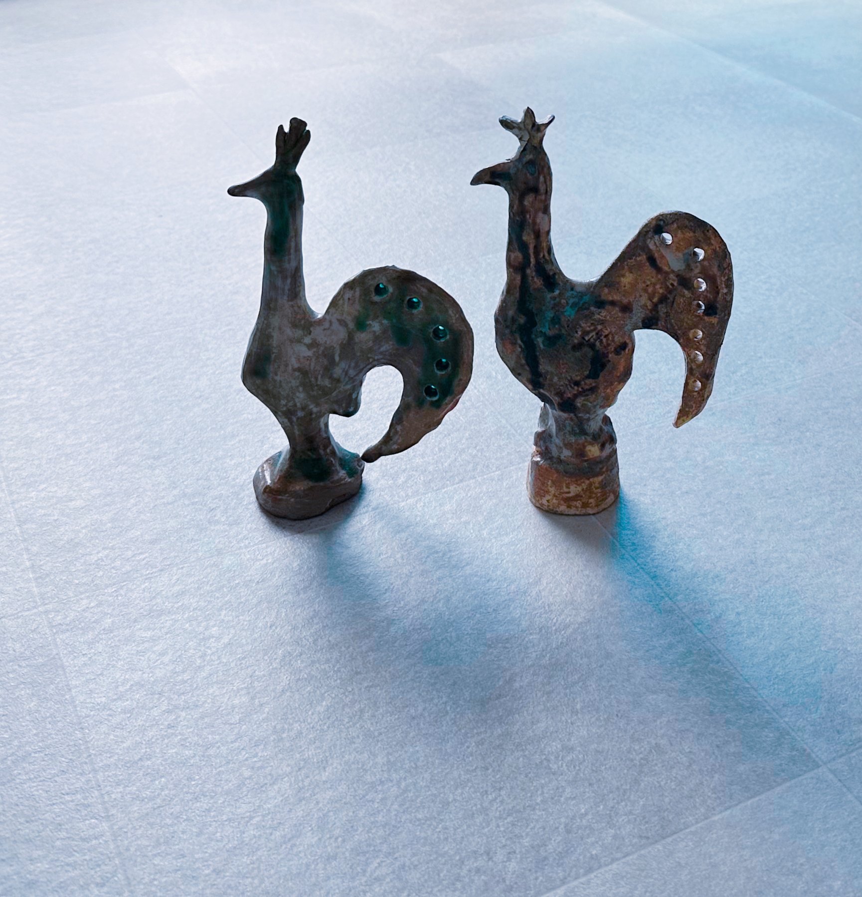 モノトーン シュール陶器で作成した鳥のオブジェ。