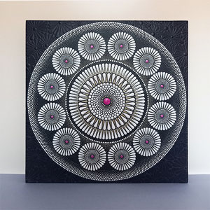 広がるパターンは花びらが放射状に開いていく姿にも通じ、視覚的なダイナミズムが空間にやさしいエネルギーと温かさをもたらします。