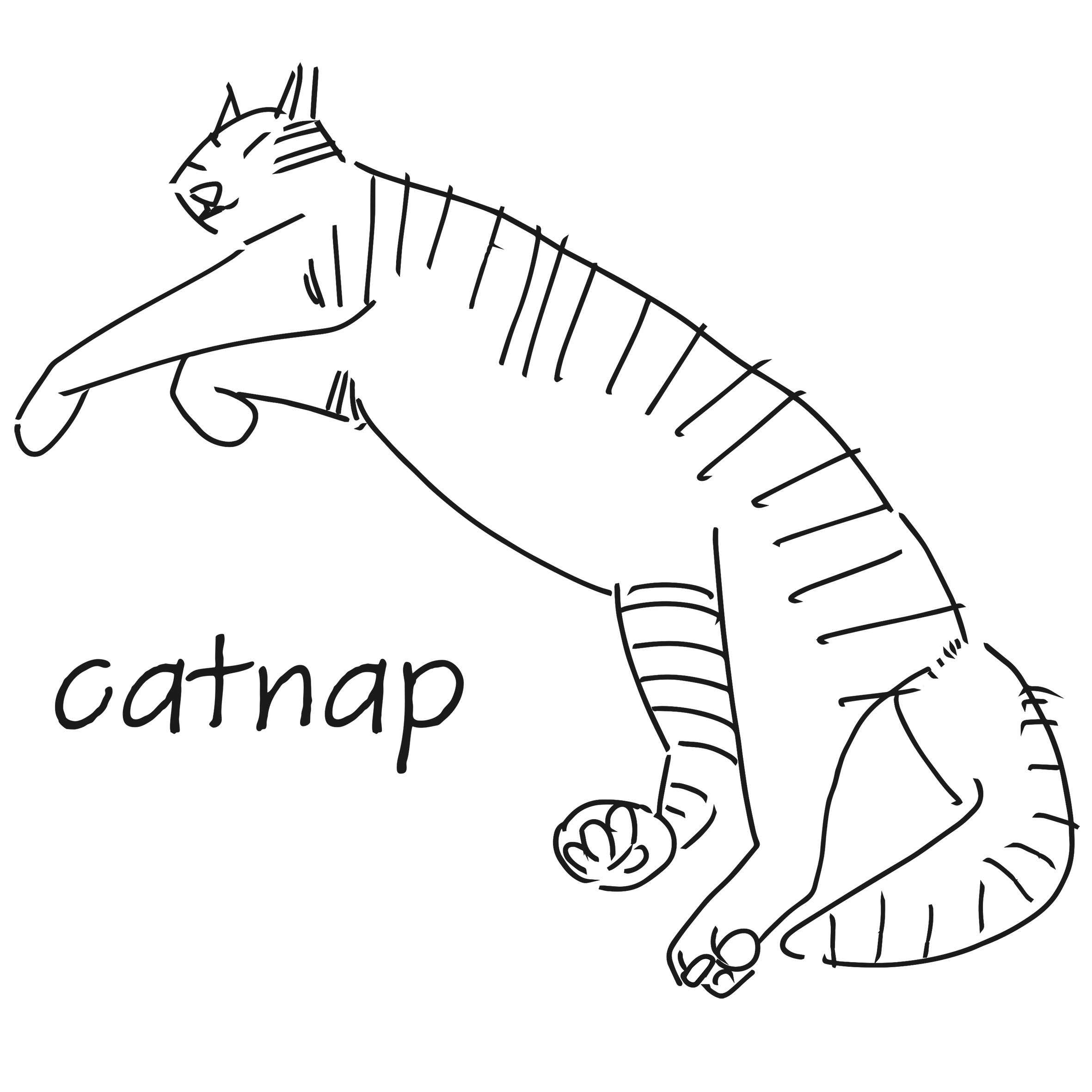 夏の昼下がりいつの間にか猫が足元で寝ていましたその顔が笑っている様に見えて思わずスケッチしましたその後お昼寝を英語で何というか調べていたらcatnapと出てきました