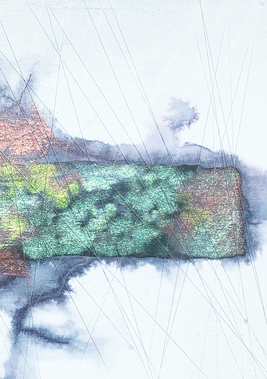幻想的 シュール クール色々ないろのインクの表情を探すため、Mixedmediaで制作しました。