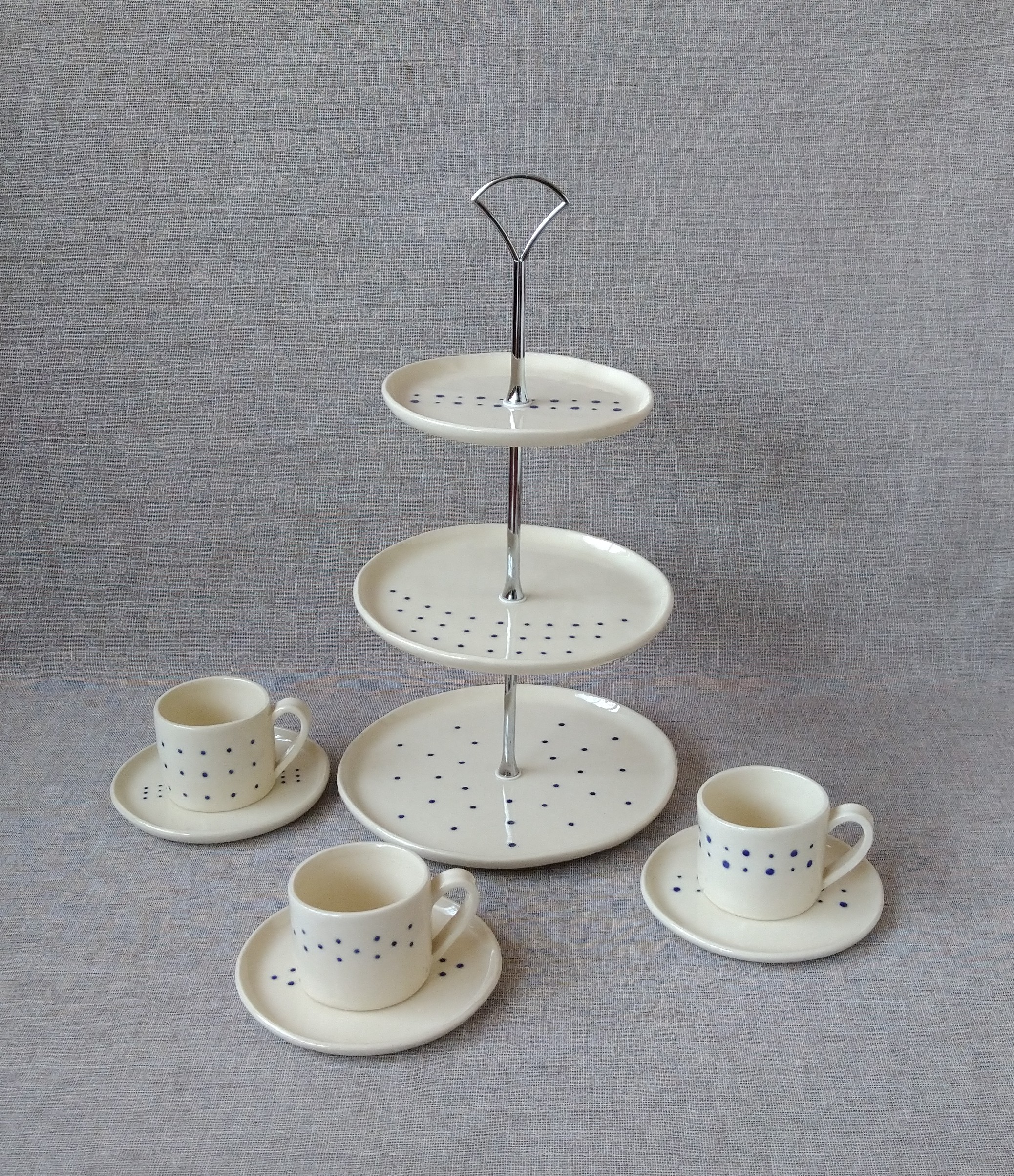 アフタヌーンティーを楽しむための器です美しいケーキやスコーン、サンドイッチを上から順に載せてお気に入りの紅茶と共に楽しむそんな時間を彩る器を作りました