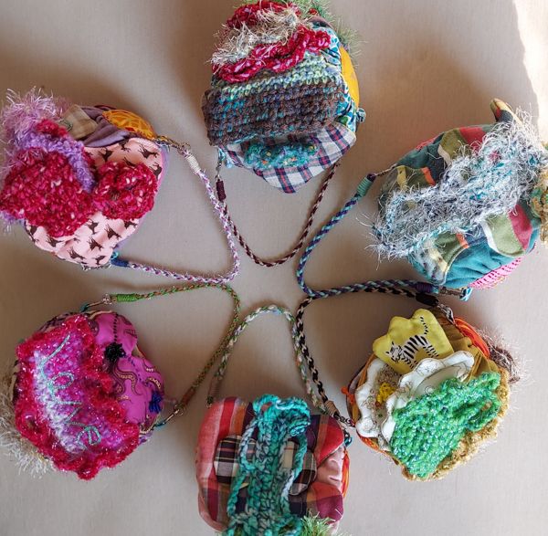 ふんわり 幻想的秘密を入れてほしいポーチを作ってます。コロンとした形がメインですが、ポーチとしてカバンの中に、サイドバック、ポーチにも用途によって使い分けもできます。布、毛糸、ビーズ、刺し子の素材をその時のひらめきで形に仕上げてす。その為全て違う形、デザインになってます。世界に一つのポーチを老若男女問わず持ってほしいポーチです。