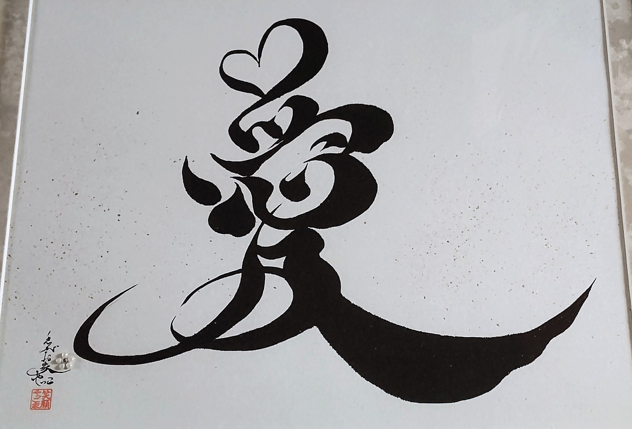♡愛♡ 宝石書画愛が全て! 先ずは己を愛する事からはじまる。 日々潤い愛で満たされますように。 本物の笑顔で生きよと切に願い 笑顔の輝きを宝石(琵琶湖真珠・SWAROVSKI)にてキラキラと表現する。♡額装サイズ…縦500mm 横625mmマット…スエード(ベージュ)額…ゴールド系