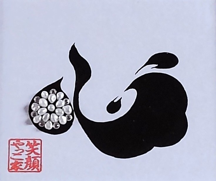 宝石書画 心ありのままに自分の心を大切に! 本物の笑顔で生きよと切に願い 笑顔の輝きを宝石(琵琶湖真珠・SWAROVSKI)にてキラキラと表現する。額装 縦250mm 横300マット…ホワイト額…シルバー系