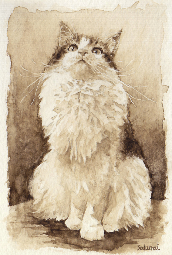 美猫画を描きました。毛のふわふわふさふさ感がポイントです。148mm×100mm