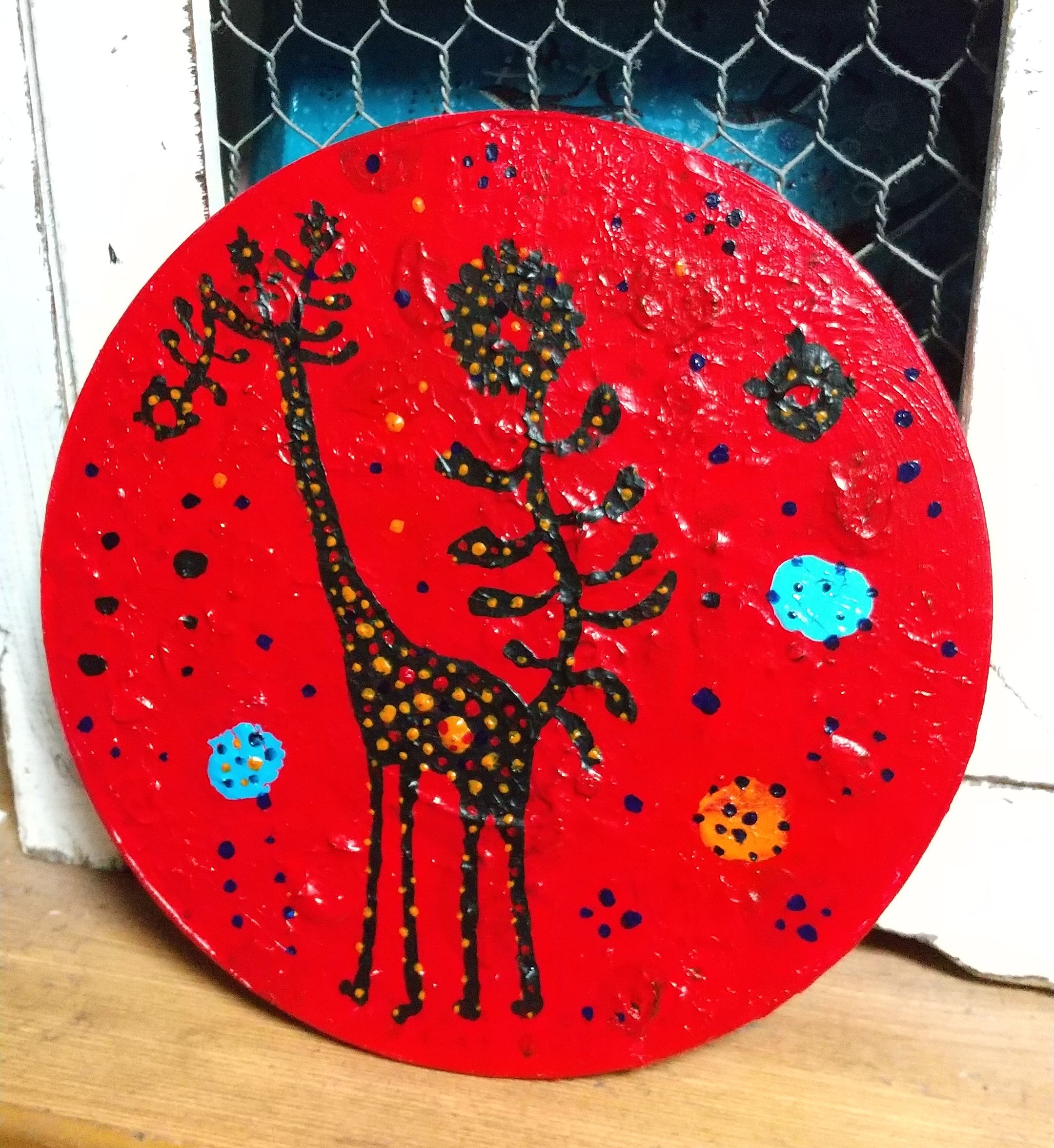 牧歌的なきりんのジラフとオリエンタルな花をコラボさせてみました。
