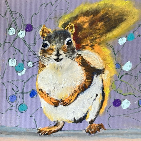 森に暮らすりす。秋が来てたくさんの木の実にごきげんです