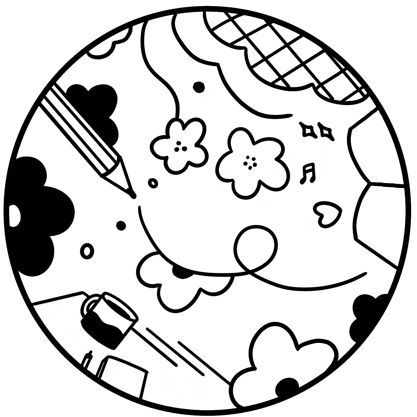 文房具があれば幸せ。そんな気持ちをスタンプをイメージして描きました。