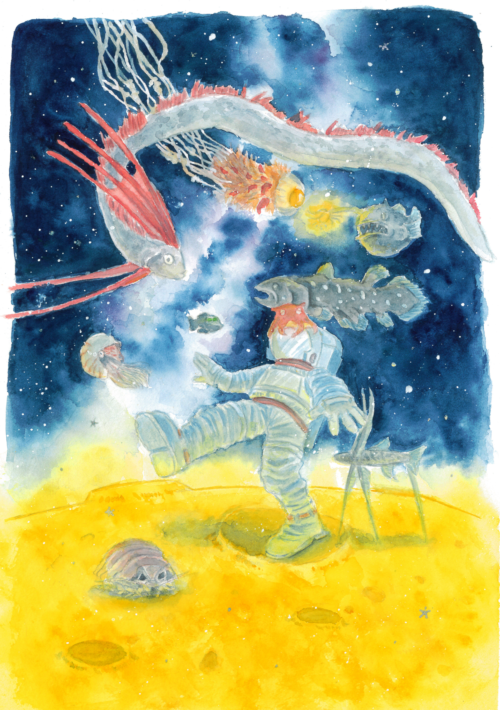 そんな想像を膨らませながら宇宙と深海を合わせた世界を描いてみました。