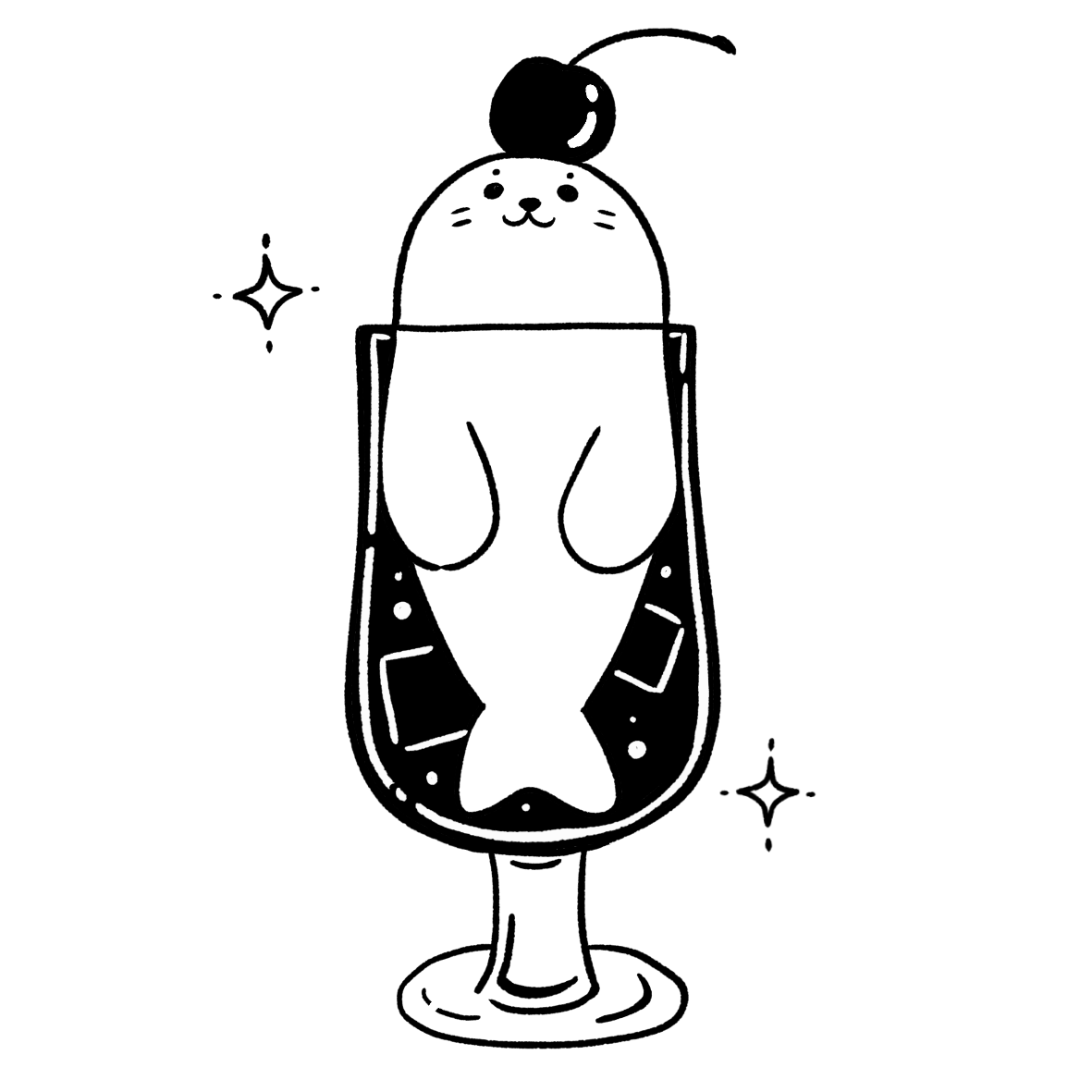 アザラシが大きなクリームソーダに浮かんでいる姿を描きました。