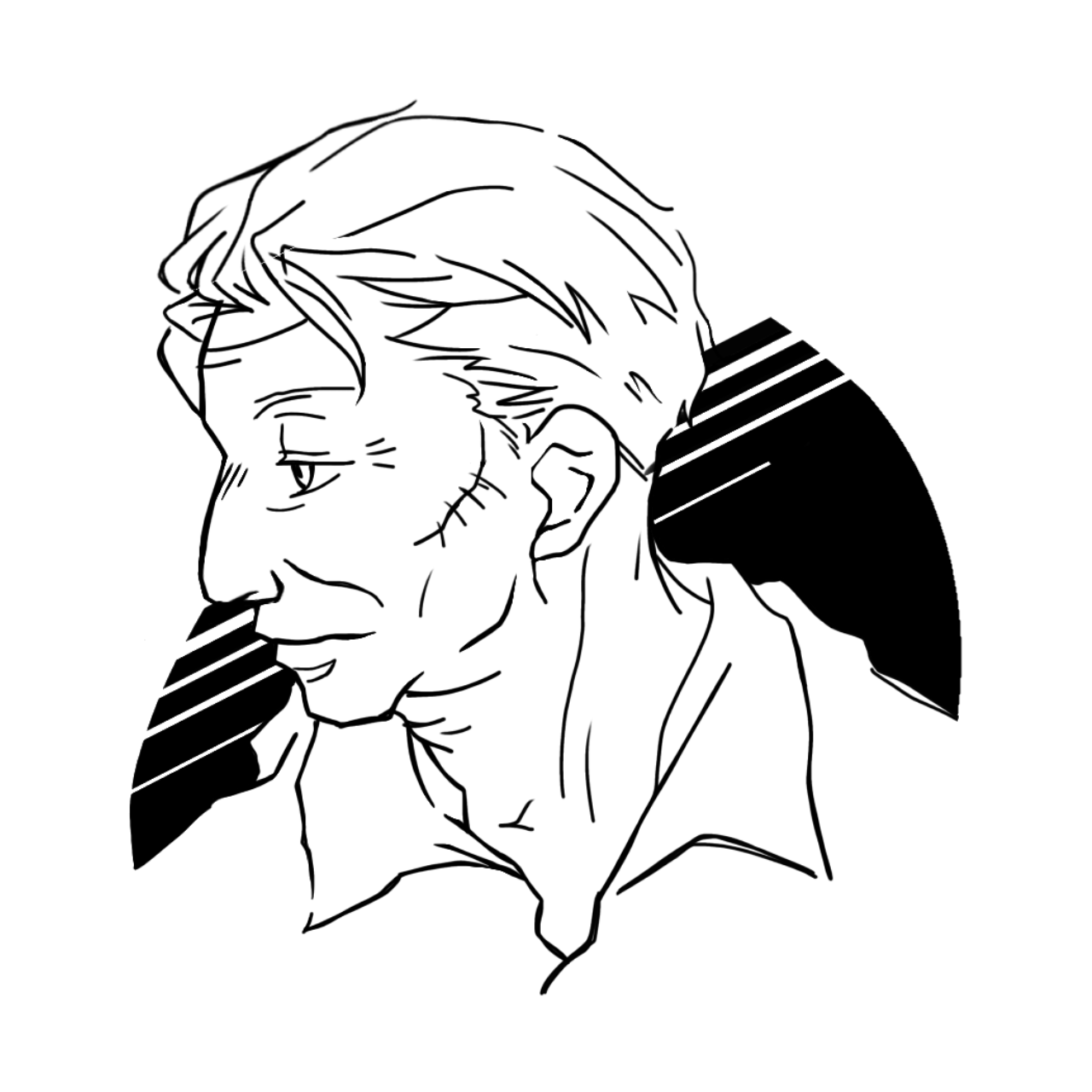 老いは誰にでも訪れるもの。歩いてきた人生を振り返り、思い浮かぶのはどんな風景か...。そんな老紳士を描いてみました。