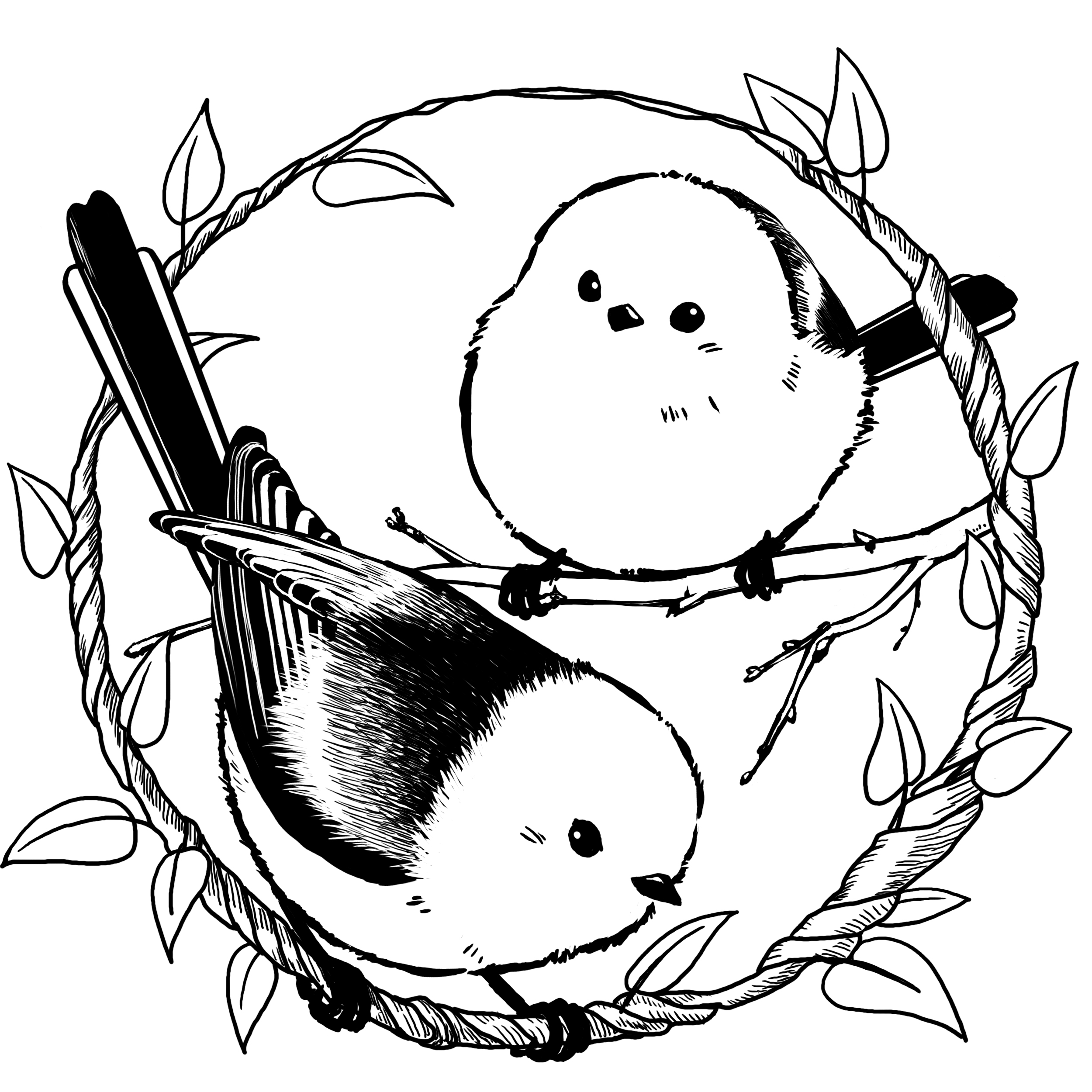 仲良しの二羽のシマエナガ。シマエナガは、正面顔がかわいいのはもちろん、横顔や背中もかわいい&素敵です。鳥 小鳥 とり 動物 小動物 かわいい きれい もふもふ