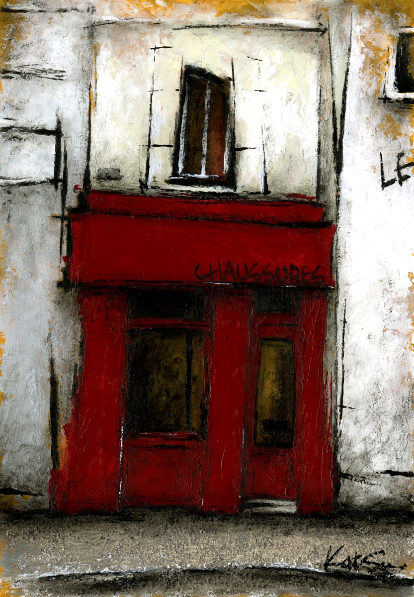 パリの裏通りにひっそりと佇む赤い靴屋。そんな出会いを描いてみました。