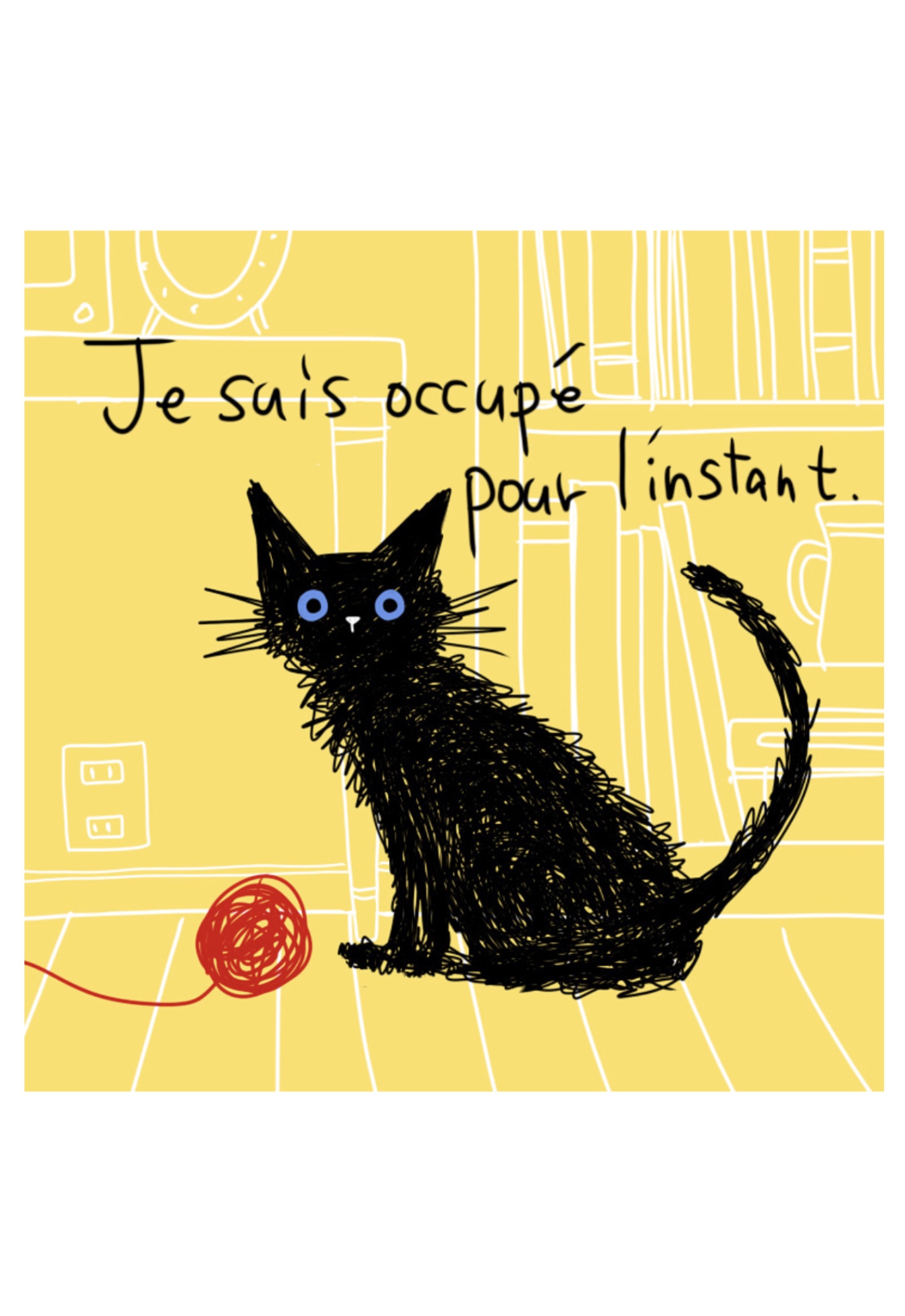 かわいい カラフル毛糸玉で遊ぶのが忙しいので手が離せないクロネコ