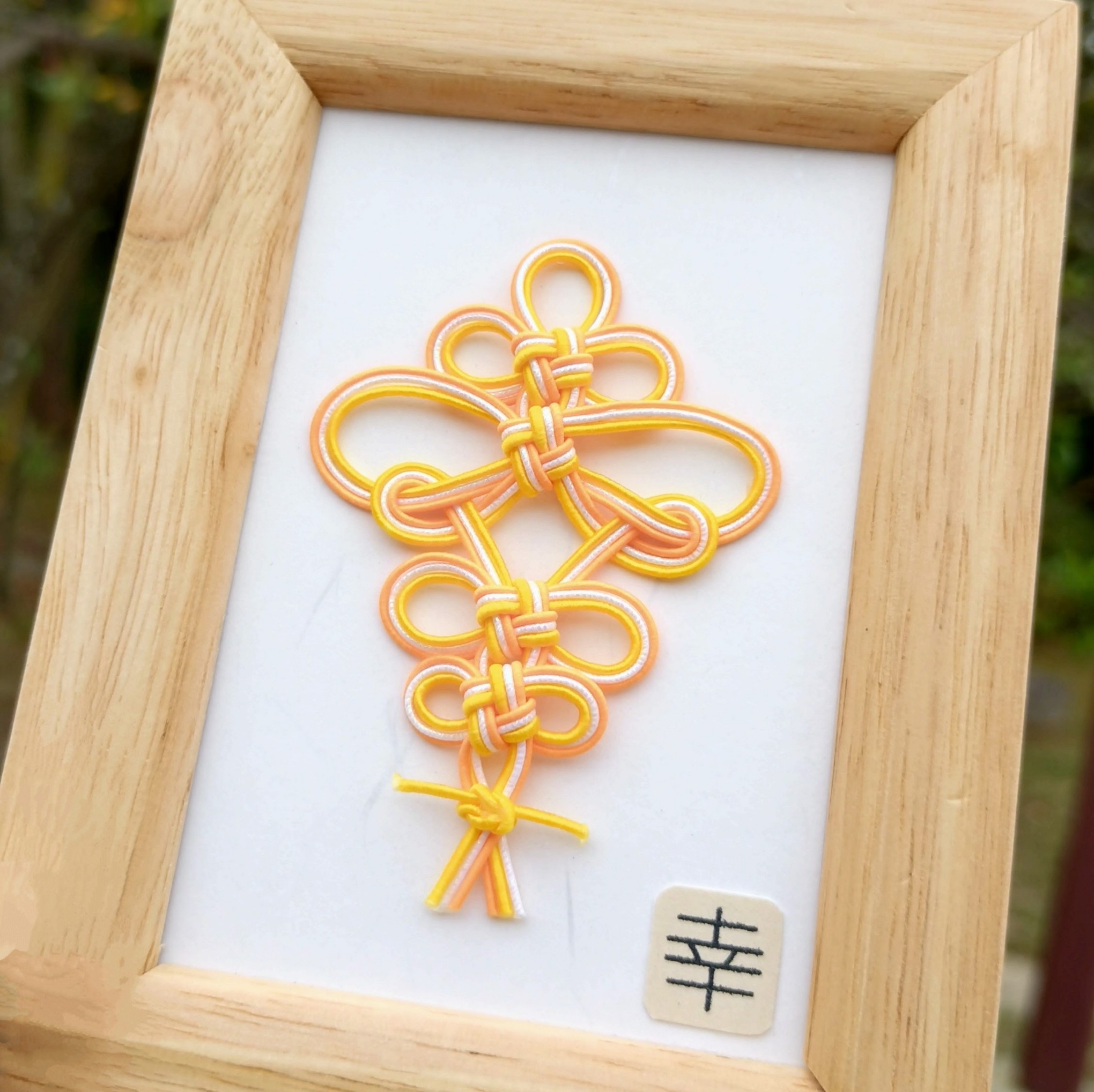 小さな額飾りのため、お部屋のインテリアにも馴染みます。ご自身のお守りとして、誰かの幸せを願って、贈り物にも喜ばれる作品です。