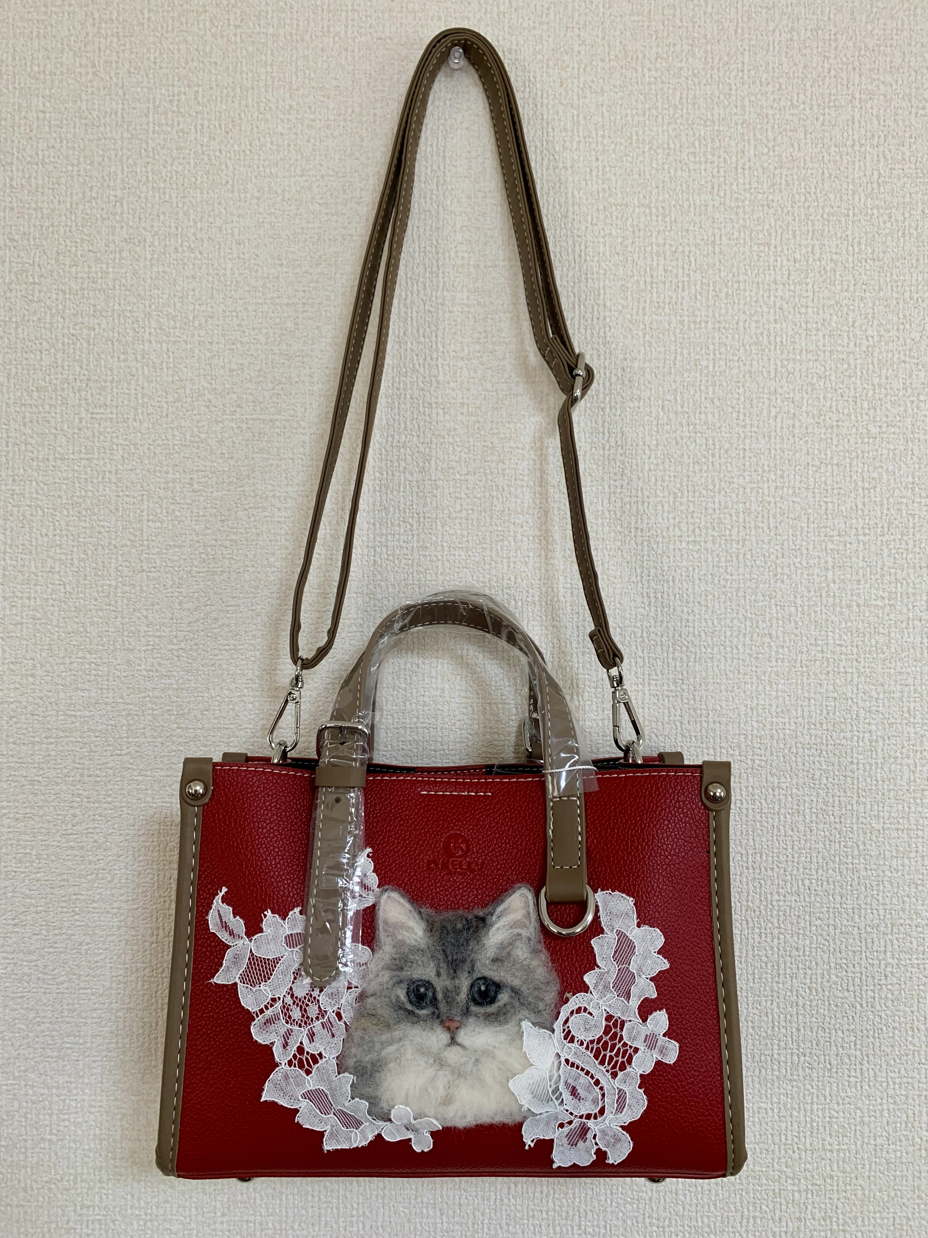かわいい ふんわり きれい羊毛フェルトでリアルに制作したネコちゃんをモチーフにしたトート・ショルダーの2wayバッグ