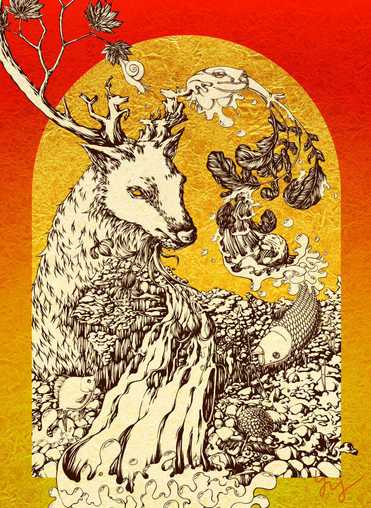 「シカ」から始まるしりとり(シカ→カエル→…)を複数ルートにわたって描いた作品です。おおむね「か」で終わり、「シカ」に還るようになっています。