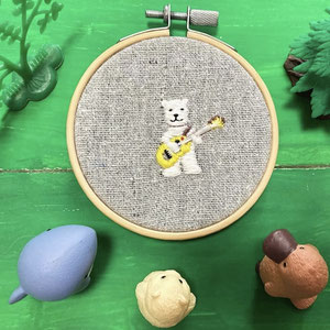 わんちゃんや変わった動物、スズランをメインにワンポイント刺繍をしたがま口やブローチ、キーホルダーなどの布小物を作っています。
