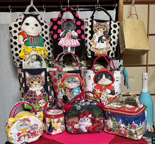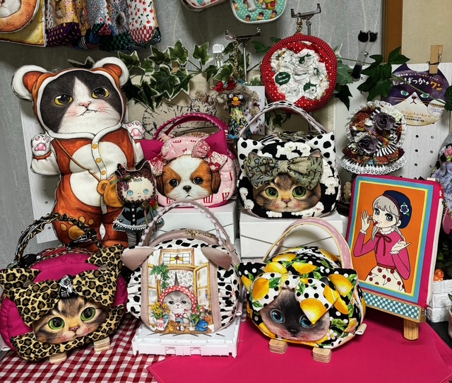 特別な生地や、作家さん物、sold outな生地を合わせて、ニャンコや、わんこのアップリケをして可愛いバックや、ポーチを作っています。どれも一点ものです。にゃんこのみみがついたバックポーチが人気です。可愛いが好きな大人女子、にゃんこ好きさんにお迎えして欲しいです。