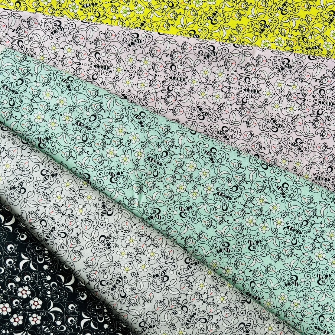 オリジナル生地『蜜蜂と苺』全5色:シーチング生地・約110㎝×50㎝
