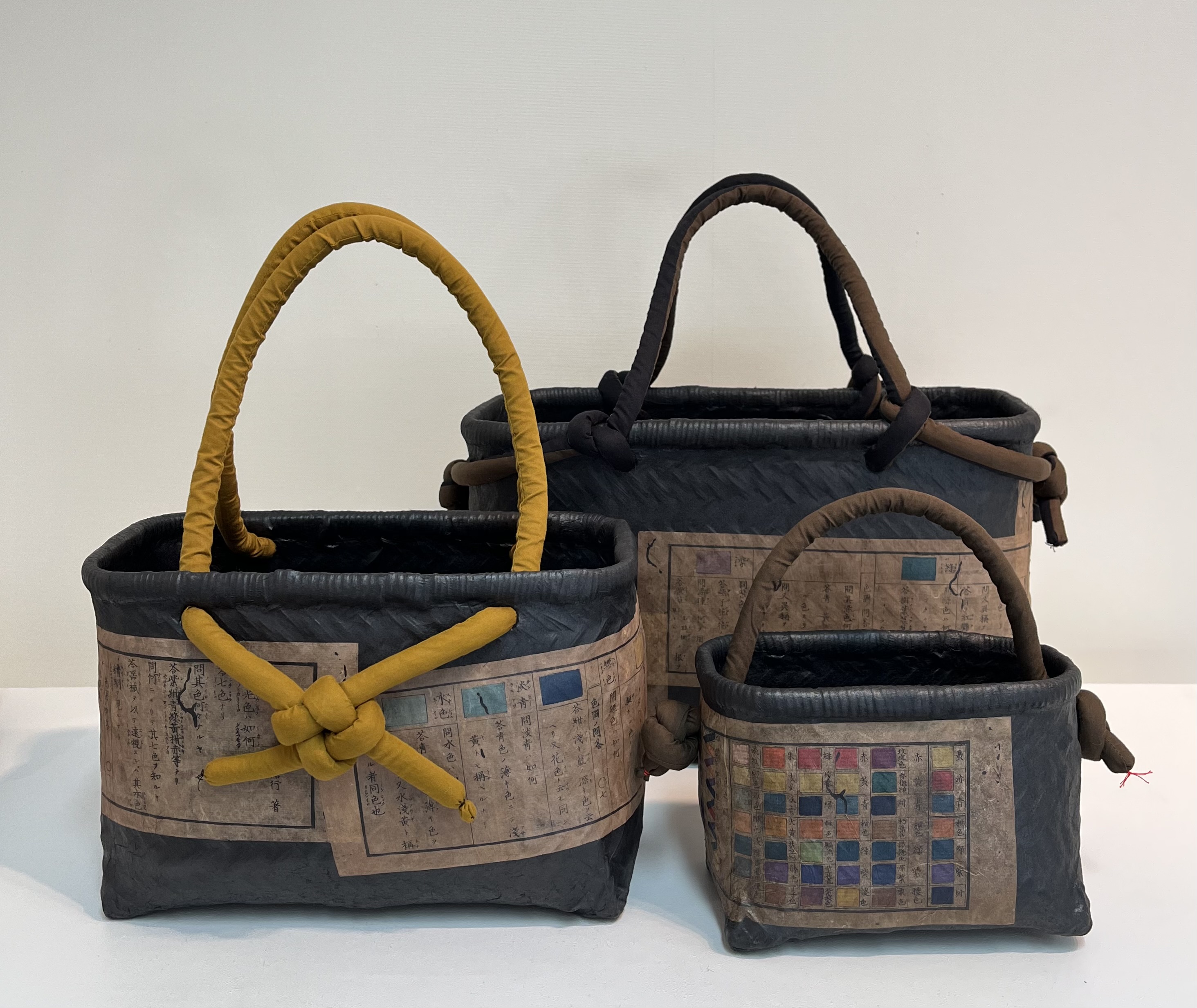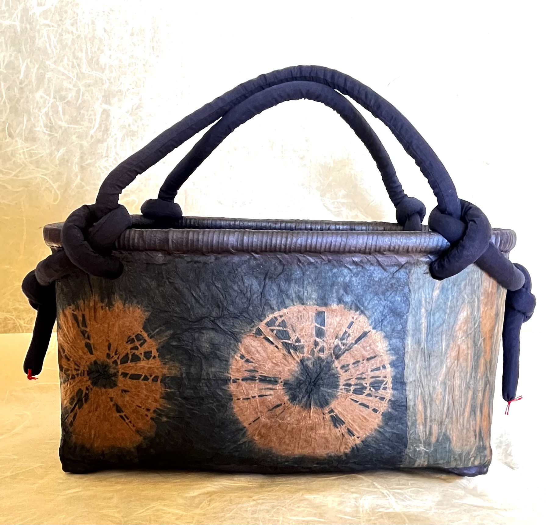 和紙と柿渋を使った、日本の伝統技法 一閑張りでバッグを制作しています。