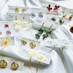 本物のお花ドライフラワーを使用したフラワーアクセサリーを作っています。本当ならではの繊細さと可愛らしさが伝わるよう、お花1枚1枚丁寧にコーティングしています。