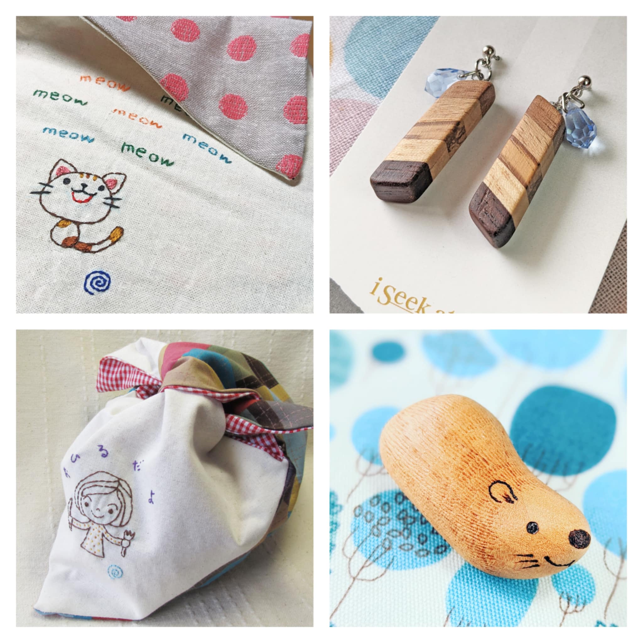 オリジナルイラスト刺繍付布小物を製作しているuzuと木工作家タケシ観光のユニットです。