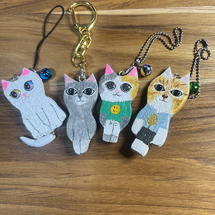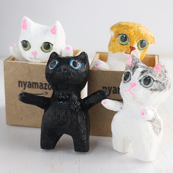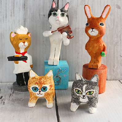 木彫りの猫を制作しています。高さ約6cm〜9cm、幅3cmの手のひらサイズです。個性的な猫の全身像や、その他、時計・ブローチ・チャームなどを作成しています。SHOP名の「猫のまんまの」ショップ名は、ネコのご飯ではなく、作品を観賞して頂くことで、ネコがあたえる癒し時間の時間を与えることができたら・・・それは「猫が人間に与える心のご飯」という意味を込めています。