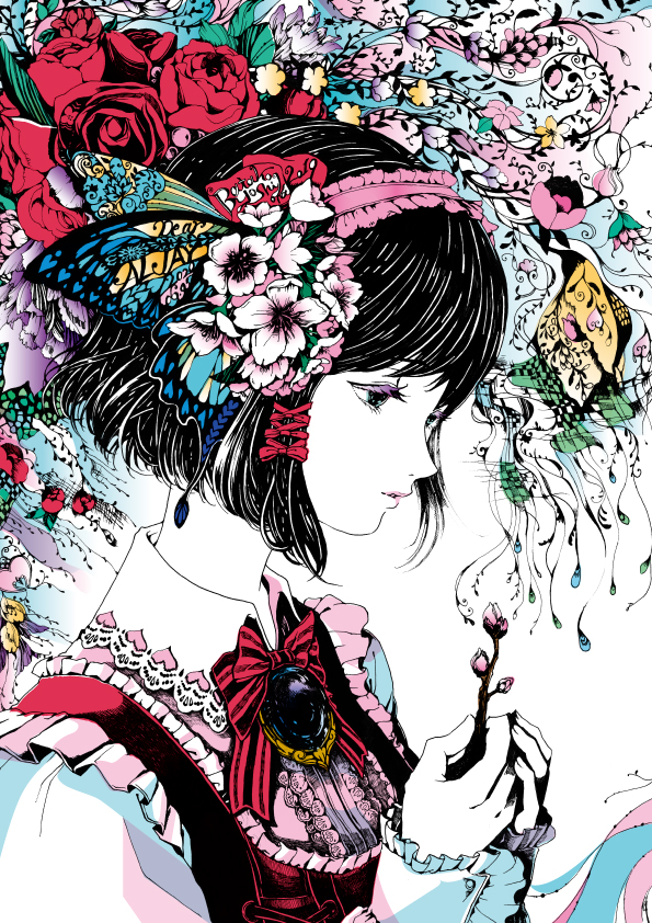 女性と花、動物をモチーフとしたファンタジーな世界観を、とことん細かく丁寧に描いています。