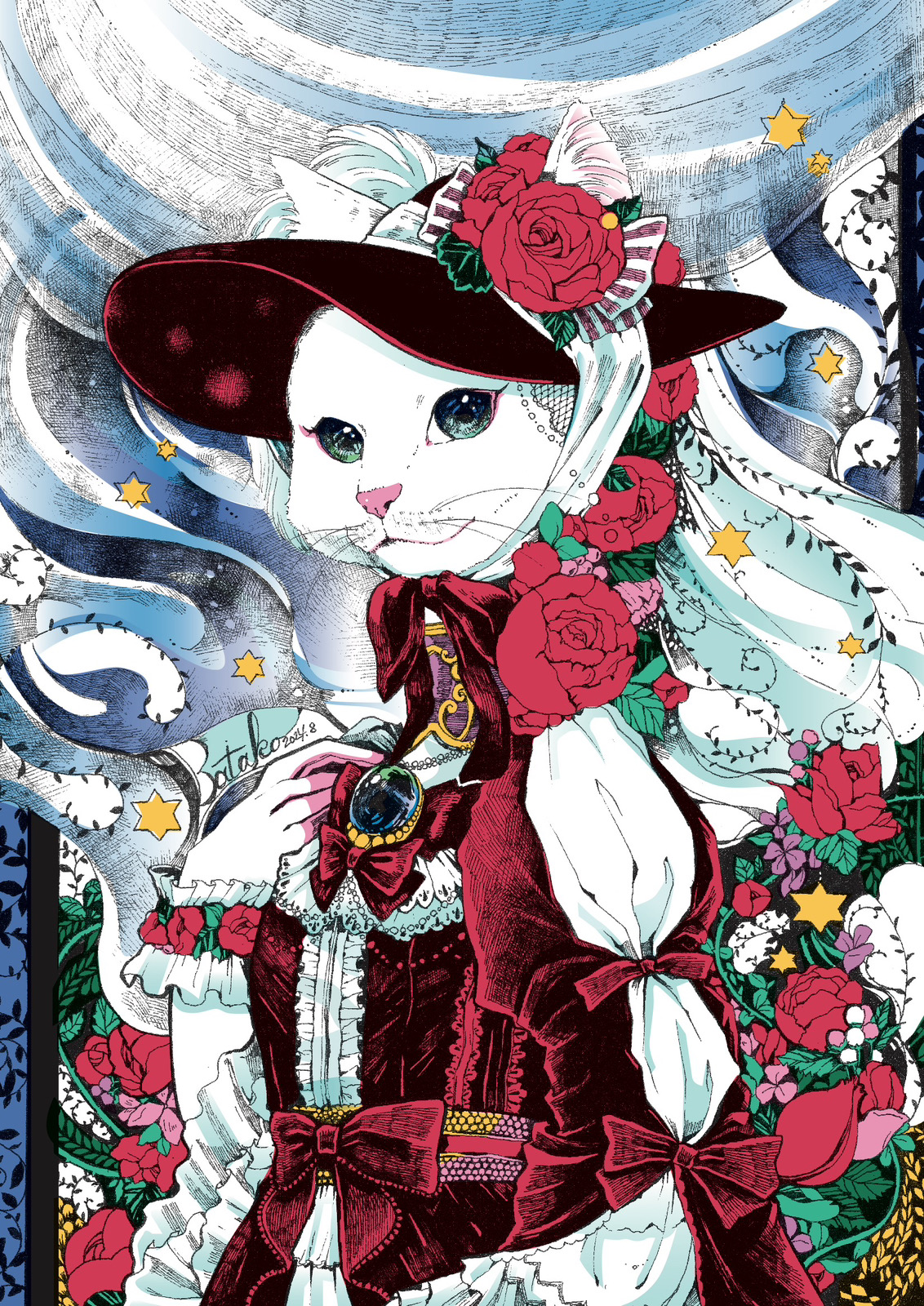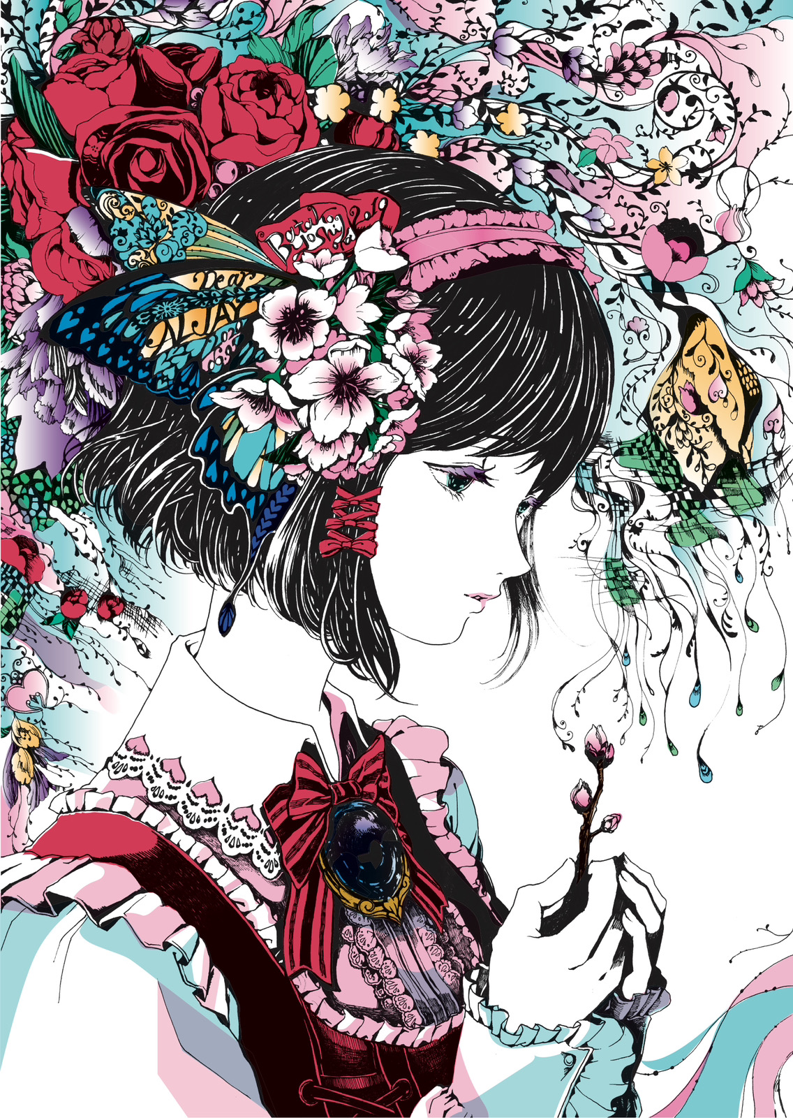 女性と花、動物をモチーフとしたファンタジーな世界観を、とことん細かく丁寧に描いています。