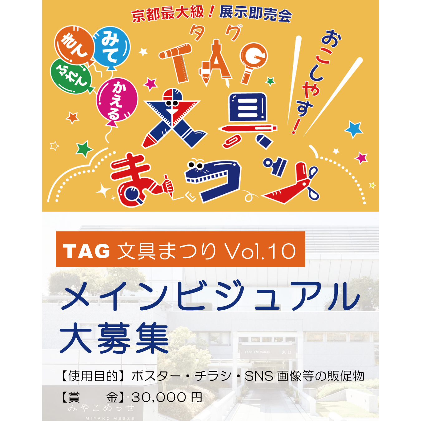 2026年5月29日(金)・30日(土)・31日(日)京都市勧業館「みやこめっせ」で開催「TAG文具まつりVol.10」のメインビジュアル作品を募集します。