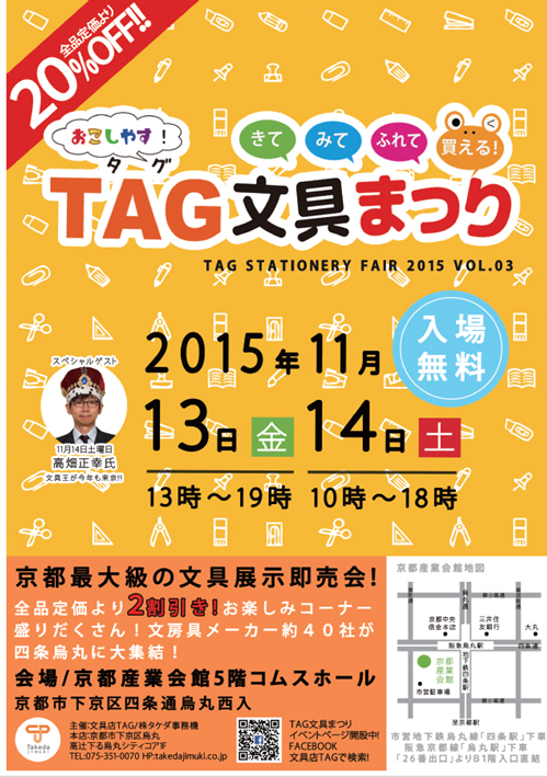 「TAG文具まつり」は、たくさんの文具メーカーがブース出店し、見て・触れて・買える、京都最大級の展示即売会です。